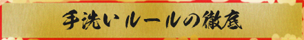 何かの作業後はもちろんその他、最低1時間に1回以上する事を義務付けております。さらに、従業員は勤務前に全員で爪の長さのチェックを行っております。勤務開始前だけでなく、休憩終了後なども厨房に入る前は必ず手を洗い、殺菌スプレーを手に吹きかけます。菌検査担当者が様々な消毒液を比較検討した上で最適なものを全店舗に導入しております。