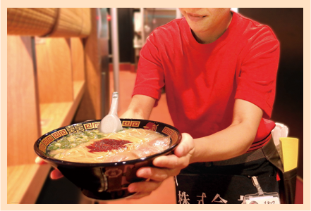 弊社は創業以来、ラーメンの美味しさはもちろん、お客様の満足度の向上や安全・安心な商品のご提供に、誠心誠意取り組んでまいりました。そのような日々の地道な取り組みが実を結び、この度ラーメン飲食業界の先駆けとしてISO22000取得・更新に至りました。今後も国際規格に基づき、ラーメンの材料に関わる製造・供給、お客様満足度の向上を目指し、"とんこつラーメンを世界一研究し続ける会社"として安全・安心なラーメンのご提供をしてまいります。